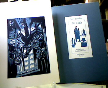 Für Ottla. Holzschnitte Archibald Bajorat. 2. Druck der Pfaffenweiler Presse. Pfaffenweiler, Pfaffenweiler Presse, (1983). 33 S. [ 1 Bl.] mit 4 mehrfarbigen Holzschnitten und einer lose beiliegenden Extrasuite der 4 Holzschnitten (diese nummeriert und signiert) Gr.-8° gebundener Originalpappband mit montiertem Deckebild. in OSchuber. Spindler, 91.23. Vorzugsausgabe mit 4 zusätzlichen seperaten, signierten und nummerierten Originalholzschnitten. Im Impressum vom Autor und Künstler und Autor signiert.