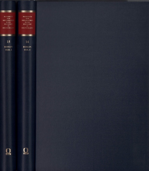 Handbuch der historischen Buchbestände in Deutschland. BAND 14 und 15: Berlin. 2 Bde (komplett). Hildesheim / Zürich / New York, Georg Olms, 1995. 255 u. 240 S., 2 Bl. Mit 3 Diagrammen. 4to (29,5 x 20,5). OLn. Behandelt u.a. die Staatsbibliothek zur Berlin - Preußischer Kulturbesitz, die Universtiätsbibliotheken der Humboldt-Universität, der Freien Universität und der Technischen Universität, die Bibliotheken des Bundesverwaltungsgerichtes und des Diakonischen Werkes der EKD, die Senatsbibliothek u.v.m. Das Handbuch enthält zusammenfassend Bestandsgeschichte und Bestandsbeschreibung der einzelnen Bibliotheken, Kataloge, Quellen und Darstellungen zur Geschichte der jeweiligen Bibliothek sowie ggf. Veröffentlichungen zu den Beständen. - Hrsg. von Friedhilde Krause unter Mitwirkung von Paul Raabe. Bearbeitet von Alwin Müller-Jerina und Friedhilde Krause. Register von Karen Kloth. - Sehr gutes, sauberes Exemplar.