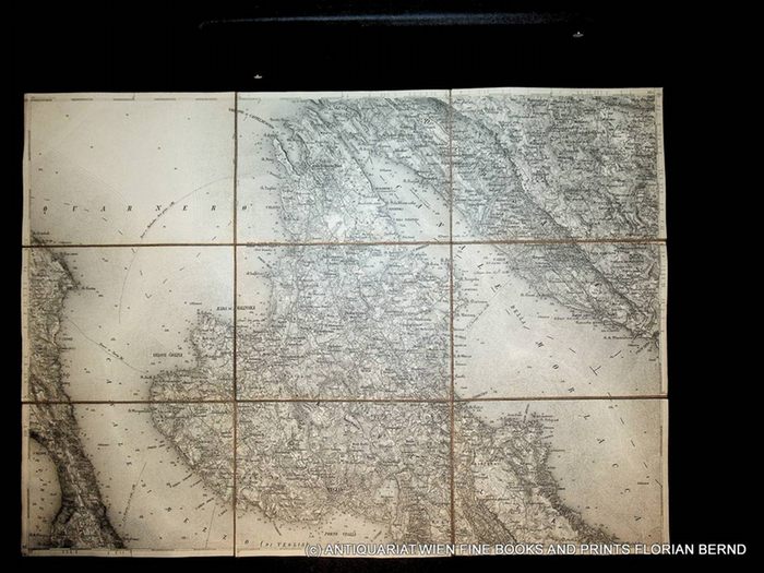 Veglia und Novi -Land: K?STENLAND/KROATIEN-SLAVONIEN (= Specialkarte der ?sterreichisch-Ungarischen Monarchie - 1:75 000 Zone 25 Colonne XI [Band: 5953]) Wien, Milit?rgeographisches Institut, ca. 1883. Formatangabe ca 50 x 37 cm, zu 9 Segmenten auf Leinen aufgezogen, Ausgabe: einf?rbig ; Zustand: gut. Spezialkarte ?sterreich-Ungarn <1:75000>.