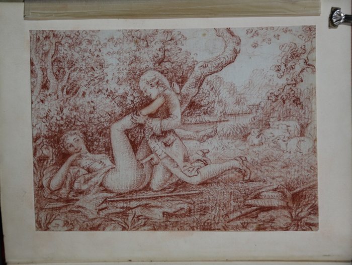 Die Weisheiten der Aspasia. Privatdruck, Wien, 1923. 30 x 23 cm. 394 (4) Seiten. Zusätzlich eine erotische Lithographie mit eingebunden. Handeinband in rotem genarbtem Halbleder auf 5 erhabenen Bünden mit Rückenvergoldung und Rückenschild. *Erschien in einer einmaligen Ausgabe in 323 handschriftlich numerierten Exemplaren. - Hayn.-Got. IX, 584. - "Die seltsamen Liebeslehren der berühmten Hetäre, die Streben nach ernster Sachlichkeit mit der raffiniertesten Kunst der Wollust verband. Vollkommenes Gegenstück zu Aretino." (Bilder-Lexikon II,845). Der Verfasser gab an, ein längst verschollenes Manuskript bearbeitet zu haben, der Text stammt aber vermutlich von ihm selbst und bildet eines der besten Werke der erotischen Literatur. - Exemplar in einem zeitgenossischen Handeinband gebunden sowie zusätzlich auf dem Vorsatzblatt eine Rötel-Lithographie montiert (zeigt ein Paar beim Liebesakt in der freien Natur).
