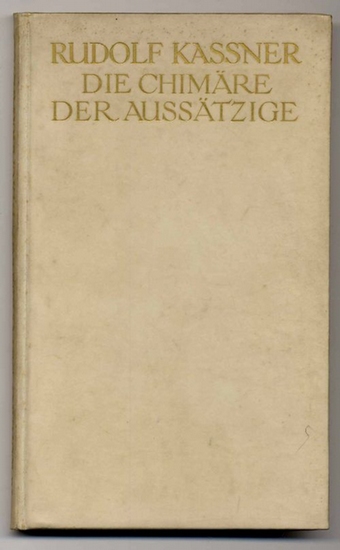 Die Chimäre. Der Aussätzige. Leipzig, Insel-Verlag, 1914. Ca. 22 x 13,5 cm. 66 S., (2) Seiten. Originalpergamentband mit goldgeprägtem Rücken- und Deckeltitel. Kopfgoldschnitt. Exemplar 10/25 der Vorzugsausgabe auf holländischem Bütten. Erste Ausgabe. WG 21; Sarkowski 874. "Daß Sie einen Geist des höchsten Rangs, noch von wenigen nach seinem Wert erkannt, wie Kassner, an sich zu ziehen, an den Verlag zu binden, ihn dort zu concentrieren wissen, wird Ihnen von der Nachwelt, auch von der bald nachwachsenden, hoch angerechnet werden." (Hugo von Hofmannsthal an Anton Kippenberg, 1913). Eines der seltenen Exemplar der Vorzugsausgabe. Pergamentdeckel leicht gebogen, sonst gutes Exemplar.