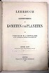 Lehrbuch zur Bahnbestimmung der Kometen und Planeten. Erster Band, zweite und völlig umgearbeitete Auflage (mehr in dieser Auflage nicht erschienen). Leipzig, Engelmann, 1882. 4to (ca. 27,5x18,5 cm), XII, 683 Seiten, Halblederband der Zeit mit Rückengoldprägung. Der Einband etwas beschabt, die Ecken und am Rücken oben und unten etwas bestoßen, privater Namenseintrag auf dem Vorsatzblatt, sonst gut erhaltenes Exemplar. Der Band II erschien 1880 in Erster Auflage. Oppolzer (1841-86) lehrte seit 1875 als ordentliche Professor Astronomie und höhere Geodäsie an der Universität Wien. Er berechnete und beobachtete die totale Sonnenfinsternis vom 18. August 1868 in Aden, den Venustransit 1874 in Iasi, Rumänien, und die Merkurdurchgänge 1868 und 1878 in seiner privaten Sternwarte. ÖBL VII, 240.