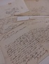 7 deutsche Briefe eines J. de Matt (aus einer schon 1715 nachweisbaren Einwanderer-Familie aus Italien) aus Philippsburg, gerichtet an seinen Vetter "monsieur Hertwich, conseiller de S.A. le Electorale de trevene" in Bruchsal (2 x) bzw. Koblenz (5 x). Philippsburg 1766-1770. Deutsche Handschriften auf Papier, datiert Philippsburg, 8. und 12. Februar, 21. März und 15. Dezember 1766 sowie 4. und 24. März 1770 (ein Brief undatiert). Format: 2 x Folio, 5 x ca. Quart. Betrifft Geschäftliches / Finanzielles (erwähnt werden Zinsen, ein Kauf, 1450 Gulden Bargeld sowie ein Anfang Dezember 1766 verstorbener Friedrich Job). Umfang: 14 Textseiten und eine Adresseite beschrieben. -- Zustand: Etwas fleckig und knittrig, mit nur geringen Schäden. |