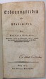 Über den Begriff des wahrhaften Krieges in Bezug auf den Krieg im Jahre 1813. Ein Entwurf für den Vortrag, mit einer Rede verwandten Inhalts herausgegeben. Tübingen, Cotta, 1815. VI S., 1 Bl., 87 S. Moderner Halbleder im Stil d. Zeit mit Rückenvergoldung u. goldgeprägtem Rückenschild. Erste Ausgabe, posthum erschienen. Mit dem Erstdruck von Fichtes berühmter "Rede an seine Zuhörer, bei Abbrechung der Vorlesungen über die Wissenschaftslehre am 19. Februar 1813". - Meyer 251; Adickes 1356. - Gebräunt u. teilw. braunfleckig. Titel im Bund verstärkt u. mit hinterlegtem Einriß. Titel u. S. 1 mit altem Stempel.