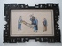 A scholar is looking at a picture scroll which is hold by two man, another one is standing with some scrolls in his hand. 20 : 31 cm. Coloured aquatint on rice paper. In an contemporary wooden frame. Very beautiful image in shining colours. The delicate plate in perfect condition. In an carved black wooden frame.