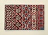 42 Blatt Muster für Jaquard-Stickerei. Exportmusterschau. Österreich grüßt die Welt. Wien, 1946. 32 : 25 cm. 42 farbige Musterblätter in 4 Mappen. Farbig illustrierte Original Karton-Umschläge. Detaillierte Muster für Stickerei-Arbeiten. - Jedes Blatt mit dem Stempel 'Österreich grüßt die Welt Expormusterschau Wien 7. Mai 1946' und mit aufgeklebten Marken Republik Österreich 60, 50 und 10 Groschen.