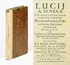 Lucij A. Senecae libri quatuor de consolatione laureatis honoribus reverendorum, praenobilium, nobilium dominorum dicati, dum in Alma, ac Celeberrima Archi-Episcopali Universitate Societatis Jesu Tyrnaviensi. Promotore R. P. Paulo Benyovszki, e Soc. Jesu [...]. Anno salutis 1731. Mense Julio Die 17. Tyrnau, Typis Academicis per Fridericum Gall, 1731. 12°. Mit einigen Holzschn.-Initialen u. -Vignetten. 2 Bll., 138 S., 3 Bll. (das letzte weiß), Ppbd. d. Zt. m. Brokatpapierbezug. Seltene Hochschulschrift des ungarischen Jesuiten Paul Benyovski (1696-1743). - Einband etw. berieben. Rücken mit Papierstreifen überklebt. Schwach stockfleckig. - Nicht bei De Backer/S.