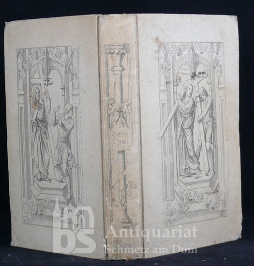 oder die vier Bücher von der Nachfolge Christi. Aus dem Lateinischen von Guido Görres. St. Pölten, Passy (gedruckt in Wien, in der Mechitaristen Congreg. Buchdruckerei) 1839. 8°. 2 Bll., (368) S. OPpBd mit beidseitiger Deckel- und Rückenillustration. Einband etwas angestaubt, geringf. fleckig und etwas berieben, Ecken mäßig bestoßen. Teil etwas stockfleckig. Mit 4 ganzseitigen Holzschnitt-Illustrationen, die restlichen Seiten (bis auf 2 Bll. Index) mit großen geschnittenen Borduren und Vignetten (nach Steinle). - Fromm, Imitatio Christi 269. Vgl. auch Rümann 2539 (dort als Prachtausgabe).