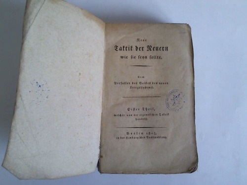 Neue Taktik der Neuern wie sie seyn sollte. Vom Verfasser des Geistes des neuen Kriegssystems. Erster Theil, welcher von der eigentlichen Taktik handelt Bln., Himburgsche Buchhandlung, 1805. 350 S., Broschur der Zeit (Stempel auf Titel/etwas fleckig)---.