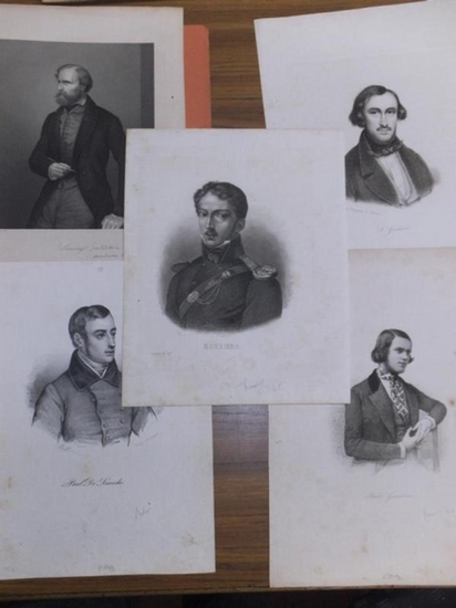 Umfangreiche Porträtsammlung ( Portraitsammlung ) mit 75 Personenbildnissen zumeist Büsten, alle in Stahlstich und Kupferstich. Enthalten sind nach Fachgebieten sortiert 1.) WISSENSCHAFTLER, TECHNIKER, PHILOSOPHEN: Ammon, Dr. von; Audubon, John J. (Ornithologe); Baird, Professor Spencer Fullerton (Ornithologe); Bentham, Jeremy (Philosoph); Black, Dr. Joseph (Physiker und Chemiker); Bode, Johann Elert (Astronom); Borsig, August; Cuningham, Alex.; Endlicher, Dr. (Botaniker); Gevres, Leo Potierde; Harl, Dr. Johann Paul (Philosoph); Meyer, Heinr. Aug. Wilhelm; Müller, Johannes (Historiker); Riedner, Johan (Philosoph) ; Schilling, Dr.; Schüler, Dr.; Stephenson, Robert (Ingeneur); Struveict, Georgius Adam; Taubmann, Friedrich (Prof. der Dichtkunst); Ternaux, Henri (Historiker); Werner, Abraham Gottlob (Mineraologe). 2.) THEOLOGEN: Azzoloni, Cardinal Dezio; Clemens II.; Klesel, Melchior; Reinhard, Franz Volkmar; Schuderhoff, Georg Jonathan; Tzschirner, Dr. H.G.; de Wette ; In protectione Die Coeli 3.) MILITÄR: Kleber, Jean-Baptiste; Kosciuszko, Tadeusz(poln. General unter Washington); Melas, Michael von; Moncey, Bon-Adrian-Jeannot; 4.) KÜNSTLER, DICHTER, MUSIKER, MALER, SCHAUSPIELER, SÄNGER: Gallait, Louis (belgischer Maler); Gardoni, Italo (Tenor); Koerner, Theodor (Dichter); Laroche, Paul de (Maler); Lessing, Karl Friedrich (Maler); Mademoiselle de Roissy (Sängerin); Scandiano, Matto Bojardo di (Dichter). 5.) STAATSMÄNNER, POLITIKER : Barthelemy, Francois Marquis de; Berryer, Pierre Antoine; Bowring, Sir John; Julius Caesar; Coligny, Gaspard de (Hugenottenführer); Corday, Charlotte (Mörderin von Jean-Paul Marat; Duttlinger; Fischhof, Dr. Adolf; Fox, Charles James; Franklin, Benjamin; Gervinus, Georg Gottfried; Jefferson; Lamoignon-Malesherbes, Christian Wilhelm; Mirabeau, Jean-Baptiste de; Ochs, Peter; Penn, William; Pitt, William d.J.; Reiersen, Niels Lunde; Ricasoli, Bettino Baron; Schomburg, Karl (Bürgermeister von Kassel); Thiers, Adolphe. 6.) ADEL, FÜRSTEN, HOCHARISTOKRATIE: Doppelportrait-Alexander I. und Friedrich Wilhelm III. / Hospitibus Augustis; Doppelportrait- Erzherzog Carl und Graf Wurmser; Robertus Dudleus (Graf Leicester) ; Lord Grenville; Johann Erzherzog von Österreich; Knorring, Gustav von, Ludwig I. König von Bayern; Oxenstierna, Axel; Oxenstierna, Johann; Herzog von Portland; Wenzel IV. König von Böhmen ; 7.) NOCH NICHT ERMITTELTE PERSONEN: Kayser, Vic. De; Warton, Molly,. Verschiedenste Orte und Jahre, alle wohl vor 1900. Vorliegend eine Sammlung gegliedert in sieben Heftern, alphabetisch sortiert. Die Stichgrößen zwischen 5x5 bis zu 10x10 variierend, teils ovale Portraits, teils eckige. Einige auf Papier aufgeklebt. Einige Blätter mit Stockflecken. Sonst gut erhalten. Die Hefter sind unterteilt in 1. Wissenschaftler, Theologen, Professoren, Pädagogen usw. / 2. Grafen, Fürsten, Barone, Hochadel usw. / 3. Militär. / 4. Künstler: Musiker, Dichter, Journalisten. 5. Künstler: Schauspieler, Sänger, Intendanten. / 6.) Naturwissenschaftler, Techniker usw. / 7. Staatsmänner, Könige, Militär. / 8. Nicht ermittelte Personen. // Alle Portraits in den Ordnern sind alphabetisch sortiert. -- Sie können gerne Scans der Sie interessierenden Persönlichkeiten anfordern und diese einzeln je nach Zustand und Qualität zu einem Preis zwischen 5-8 Euro erwerben! K00611A-303550.