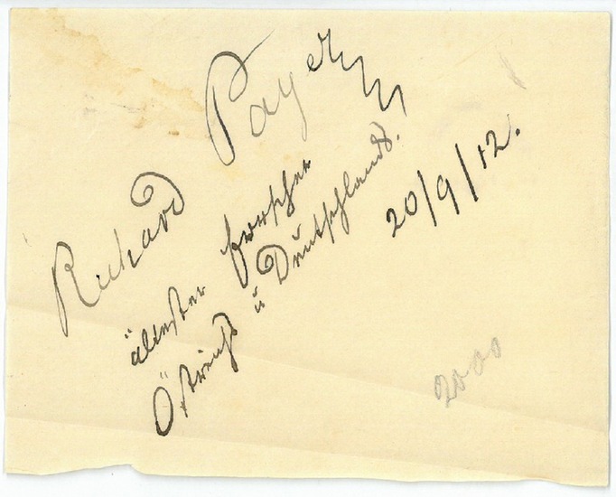 Albumblatt mit eigenh. U. O. O., 20. IX. 1912. 90 x 115 mm. Mit dem Zusatz "ältester Forscher Östreichs und Deutschlands".