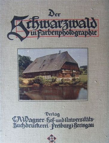 Der Schwarzwald in Farbenphotographien. Hrsg. unter Förderung des Badischen u. W�rttembergischen Schwarzwaldvereins. Wagner, Freiburg ca. 1910. 50 farb. u. mont. Tafeln auf Karton u. Beiheft mit 39 S. Text. Folio. Leinenmappe mit mont. Farbtaf. auf dem Vorderdeckel. Geringe Gebrsp. Wenige Taf. am Kartonrand mit geringen Gebrsp. Sehr schönes frisches Exemplar. Texte von Karl Brunner, E. Burger, J. Dieffenbacher, F. Dölker, August Ganther, Otto E. Heilig, J. Heilmann, Ludwig Neumann, J. de Pellegrini, Fridrich Pfaff, R. Raupp, Dr. Salzmann, Wilhelm Schlang, G. Tumb�lt u. G. A. Volz. Sehr schöne Abbildungen.