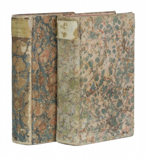 Systematisches Handbuch der Staatswirthschaft mit vorzüglicher Rücksicht auf die Literatur derselben. Erster Band. Erste [Zweyte] Abtheilung in 2 Bänden [= alles Erschienene]. Berlin, Heinrich Frölich, 1804-1805. 8°. XXVIII, 676 S., 1 Bl.; XX, 798, 1 Bl., Marmor. Ppbde. d. Zt. m. goldgepr. Rückenschildern u. dreiseitigem Rotschnitt. Erstausgabe. - Mehr nicht Erschienen! - Die etwas abweichend gebundenen Einbände stärker berieben u. etw. bestoßen (ein Rückenschild fast zur Gänze abgeblättert). Titelbll. m. altem Namenszug. Etw. gebräunt u. stockfleckig. - Krieg, MNE II, 344.