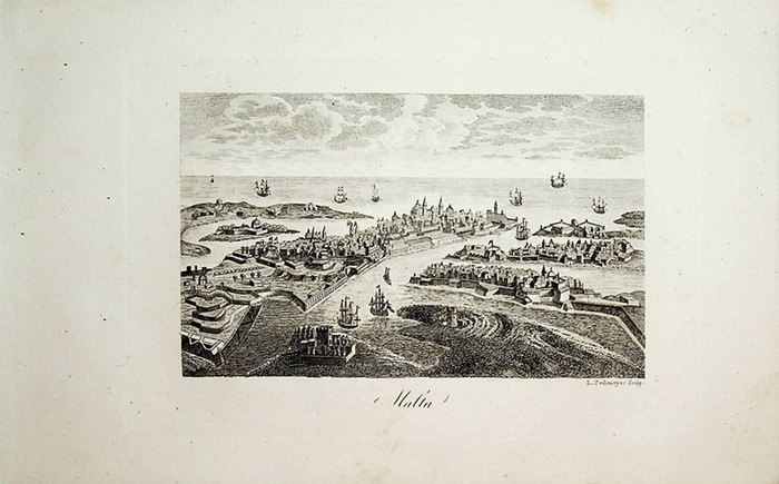 VALLETTA Wien?, ca. 1830. Ansicht, view, vue original Kupferstich, original Chalcography engraving, von, by Leopold Zechmayer (1805-ca. 1860), Platte ca. 12 x 18 cm. Druckgrafik, Print.