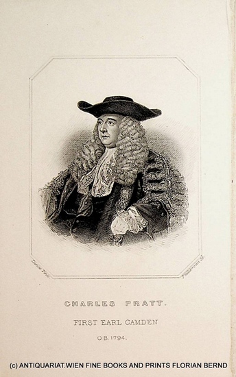 Pratt, Charles Pratt, 1st Earl Camden (1713-1794) c. 1850. original steel engraving, sheet size approx. 17 x 10,5 cm, condition: good. Portrait Steel engraving, original antique engraving, no book.