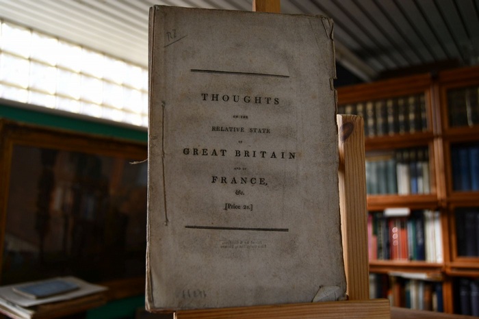 Thoughts on the relative state of Great Britain and of France, at the close of Mr. Pitt`s life and administrations, in 1806. London, Hatchard, 1806. 63 S., Broschur 23 x 15 cm, unbeschnittene Broschur. Einband berieben, bestoßen, angeschmutzt, eselsohrig und mit Einrissen. Innen sauber.