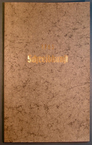 Ecritures. Aus: Recueil de planches, sur les sciences et les arts, Paris 1765. (Mit einer Holzschnitt-Titelvignette u. 14 ganzs. Kupferstichen nach Schriftmustern von Charles Paillasson gestochen von Augustin de Saint-Aubin u. 2 ganzs. Kupferstichen von Robert Benard.) -. Paris: Briasson, David & Le Breton 1765. Titelbl., 16 Ss., XVI Tfln. Gr.4°. LnKt. (um 1960) mit Elefantenhaut-Deckeln, dunkelgrünem Ln.-Rücken u. goldgeprägt. Deckeltitel (untere Ecke des Vorderdeckels mit kl. Knickspuren). Vollständige Serie der Kupferstiche zum Stichwort 'Ecritures' (Schriften) unter dem Deckeltitel '1765 / Schreibkunst' mit Erläuterungen aus der 'Encyclopédie ou dictionnaire raisonné des sciences, des arts et des métiers' von Denis Diderot (1713-1784) und Jean le Rond d'Alembert (1717-1783), die von 1751 bis 1772 in Paris erschien; die Kupferstiche stammen aus Band 2 der Tafelbände: Tafel I mit einem kalligraphischen Titel nach Paillasson gestochen von Aubin, Tafeln II-III von dem französischen Kupferstecher Robert Benard (1734-1777) zeigen einen jungen Mann und eine junge Frau in anmutiger Haltung beim Schreiben mit der Feder, darunter Schreibfedern, Federmesser, Tintenfäßchen, Handhaltungen und eine kalligraphische Übungslinie, Tafeln IV-XVI allesamt nach Entwürfen des französischen Kalligraphen und Enzyklopädisten Charles Paillasson (1718-1789) gestochen von dem französischen Maler, Illustrator, Kupferstecher und Zeichner Augustin de Saint-Aubin (1736-1807): Tafel IV zeigt verschiedene Arten, die Schreibfeder zu schneiden, Tafeln V-XVI zeigen Übungen vom ersten Ansetzen der Feder über verschiedene Alphabete bis zu kalligraphischen Musterblättern. Charles Paillasson wurde in dem Bestreben, das Ansehen der Kalligraphie in Frankreich zu verbessern, Mitglied mehrerer Pariser Akademien; Ludwig XV. ernannte ihn zu seinen ersten Sekretär, für die Encyclopédie von Diderot und d'Alembert schrieb er Artikel. - Titelblatt wohl aus Haupt- u. Zwischentitel-Fragmenten alt zusammengesetzt, etw. angestaubt u. stockfleckig, im Text nur vereinzelte Stockflecken; die Tafeln am Rand min. gebräunt u. tls. schwach fingerfleckig, nur vereinzelte Stockfleckchen.