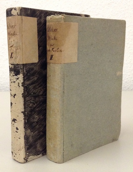 Winke für gute Fürsten, Prinzenerzieher und Volksfreunde. 2 Bände. Kiel u. Hamburg, in Commission in der Bohnschen Buchhandlung, 1786-87. 8 Bl., XXII S., 5 Bl., 462 S., 2 Bl.; XX S., 2 Bl., 528 S. Unterschiedliche Pappbände d. Zeit (Bd .1 beschabt, Bd. 2 etwas kleiner im Format u. fleckig). Erste Ausgabe. Ehlers war Professor für praktische Philosophie in Kiel und hielt in diesem Rahmen auch Vorlesungen über Pädagogik."Er schloss sich der neuen, durch Basedow begonnenen Strömung an und beteiligte sich in solchem Sinne auch an Campes Revisionswerke ... Der Verwirklichung seines kosmopolitischen Bildungsideals sollten dienen seine 'Winke für gute Fürsten ...'" (ADB V, 699). Im ersten Teil geht es u.a. um eine Begrenzung der konfessionellen Gegensätze durch einen für alle Seiten verbindlichen Minimalkonsens - eine bei kirchlicher Schulaufsicht höchst notwendige Vorbedingung für den inneren Frieden und die harmonische Entwicklung eines Staatswesens. Band 2 behandelt neben Fragen der Privat- und Staatsökonomie unter der Überschrift "Von den zur Veredlung des Volkes und zur Erhöhung des Staatswohlstandes erforderlichen Einrichtungen" ausführlich die Einrichtung des ganzen Bildungswesens. - Päd. Bildungsgut, Kat. d. dt. Lehrerbücherei 925; Humpert 991. - Etwas gebräunt.