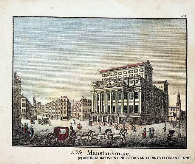 London, MANSION HOUSE, view, antique print ca. 1830 ca.1830. view / Ansicht, original Lithographie / lithograph; handkoloriert, Blatt / sheet ca.: 16 x 19 cm. Antique Print, antique print, antike Grafik.
