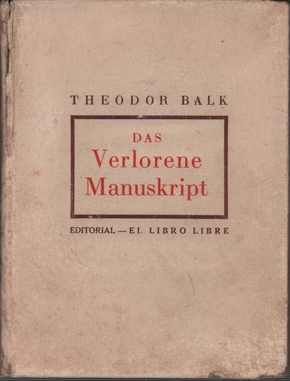 Das verlorene Manuskript. Mexico, El Libro Libre, 1943. 308 S. (= Neue deutsche Antinazi-Literatur). 20 cm. OPp. Erste Ausgabe der autobiographischen Reportagen (u.a. über die geheime Giftgasproduktion im Leuna-Werk und seine Tätigkeit als Arzt bei den Internationalen Brigaden in Spanien. - Theodor Balk (1900-1974) war Mediziner und Journalist. Er arbeitete für verschiedene kommunistische Zeitungen; so schrieb er im Stil Egon Erwin Kischs für "Neue Deutsche Blätter", "Arbeiter Illustrierte Zeitung", "Deutsche Zentral-Zeitung in Moskau" u.v.m. Das Exil führte ihn u.a. nach Prag, Paris, Spanien, Mexiko und Kanada. - Einband gebrauchsspurig, Gelenke angeplatzt/gelockert, Hinterdeckel u. letzte Lagen m. schmalem Feuchtrand.