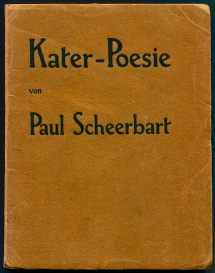 Kater-Poesie. - Paris-Leipzig: Ernst Rowohlt in Kommission bei W. Drugulin in Leipzig 1909. VII,58 Ss., 1 Bl. Kl.8°. Ockerfarb. Kt. mit schwarzem Rücken- u. Deckeltitel (min. angestaubt u. bestoßen, obere Ecke u. Außenkanten des Vorderdeckels mit schwachen Knickspuren, Gelenke gering berieben). ERSTE AUSGABE. - Gedichte von Paul Scheerbart (1863-1915), verfaßt in den Jahren 1898/99, zweite Veröffentlichung des Rowohlt-Verlages, in 800 Exemplaren gedruckt. "Rowohlt hat späterhin niemals den Namen seines allersersten Autors erwähnt, denn dessen erstes Buch war zugleich sein letztes ... Um so stolzer aber war er auf seinen zweiten Autor, den er gern seinen ersten Autor nannte, denn von jendem seelenvverwandten Phantasten Scheerbart erhielt der angehende Verleger für 100 Mark Honorar ein Heftchen Gedichte, das so recht nach seinem Herzen war, betitelt 'Katerpoesie', und nun wirklich mit dem gewichtigen Impressum 'Ernst Rowohlt Verlag, Paris-Leipzig' im Jahre 1909 erschien. ... Maximilian Hardens ... 'Die Zukunft' verglich Scheerbart mit Lawrence Sterne und Jean Paul, die 'Akademischen Monatshefte' priesen 'dieses köstlichste aller Bücher' und Professor Georg Witkowski schrieb in der 'Zeitschrift für Bücherfreunde', es 'sollte in keinem Haushalt fehlen'." (Rowohlt-Almanach 1908-1962, S. 10 f.). Ernst Rowohlt behauptete, die 'Katerpoesie' "auswendig zu kennen" (Mayer S. 30). "Tenor und Thematik der Texte lassen sich charakterisieren mit dem Begriff 'negative Poesie', den schon der Titel suggeriert. das 'groteske' Weltgefühl der 'Katerpoesie' äußert sich in teils komischen, teils satirischen, teils absurden Bildern und Situationen, über die bisweilen die Alogik des Kinderreims und der Nonsenspoesie regiert. Phantastisch-groteske Figurationen wie das 'Sonnenkalb', der 'Frack-Komet', die 'Lichthetäre' (die Scheerbart auch in den kurzen Prosagrotesken auftreten läßt) kehren später in Gedichten von Morgenstern und Ringelnatz wieder und erfahren im lyrischen Frühwerk Hans Arps weitere artistische Verfremdungen." (KNLL XIV,869). - Kohnle S. 39. - Kosch3 XIV,336. - Lubasch/Meyer S. 10. - Raabe 260.20. - Wilpert-G.2 21. - Vortitel u. letzte Seite etw. gebräunt, sonst innen sauberes, unbeschnittenes Exemplar.