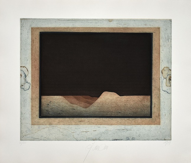 Atoll-Detail-am Horizont. 1979. [Signierte Original-Farbradierung / signed original color engraving]. _. Wil Sensen, geboren 1935 in Wuppertal. 1953-57 Studium an der Werkkunstschule Wuppertal (heute: Bergische Universität). Nummer 38 von 50 nummerierten Original-Farbradierungen auf Büttenpapier, unterhalb der Abbildung von Wil Sensen in Blei signiert und datiert (1979). Maße Blatt: 54,0 x 62,8 cm. Maße Abbildung: 40,0 x 49,5 cm. Sehr gutes Exemplar. Number 38 of 50 numbered original color etchings on laid paper, signed and dated (1979) in lead by Wil Sensen below the illustration. Sheet dimensions: 54.0 x 62.8 cm. Dimensions illustration: 40.0 x 49.5 cm. Very good copy.