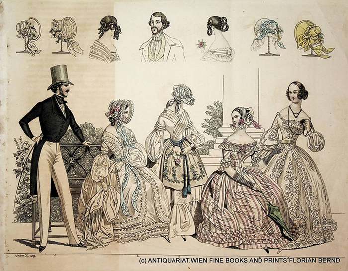 Mode 1839, Allgemeine Moden-Zeitung Tafelnummer 36 Leipzig, 1839. original Kupferstich, handkoloriert, Blatt ca. ca. 28,5 x 21,5 cm. original antique print, Mode handkoloriert Fashion Prints Hand colored fashion engraving Mode Modedarstellung handkoloriert Fashion Prints hand colored fashion engraving.