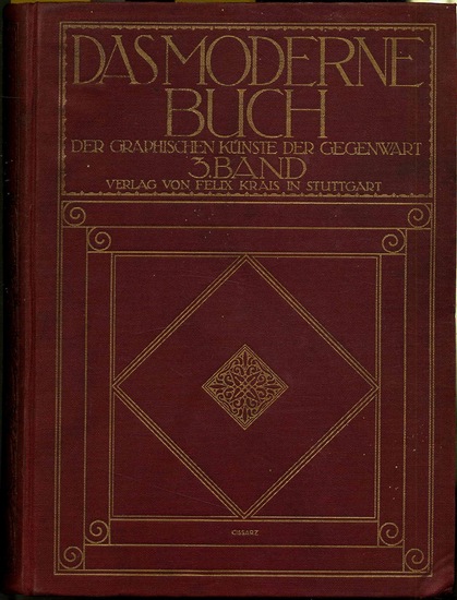 Das moderne Buch. Stuttgart, Felix Krais, 1910. Ca. 35 x 25,5 cm. (10) S., 315 Textseiten, mit vielen Textillustrationen sowie zahlreichen teils farbige, teils mehrseitige Beilagen. Brauner Orig.-Leinenband mit Goldprägung. Aus der Reihe: Die graphischen Künste der Gegenwart, III. Band. Überaus reich ausgestattetes Werk, mit Original-Druckbeispielen und mit einmontierten Arbeitsmaterialien (z.B. Vorsatzpapieren). Aus dem Inhalt u.a.: Vom Papier, Schrift und Schriftguß; Die Stereotypie; Galvanoplastik; Von der Farbe; Vom Buchdruck; Der Dreifarbendruck; Lithographie und Steindruck; Kartographische Reproduktionstechnik; Der Musikaliendruck; Die photomechanischen Illustrationsverfahren, Vom Bucheinband; Die neue Buchkunst; Branchen-Register. Anfangs etwas stockfleckig, einige Seiten fleckig (wasserrandig). Versand außerhalb Deutschlands nur auf Anfrage, Gewicht ca. 8 kg.
