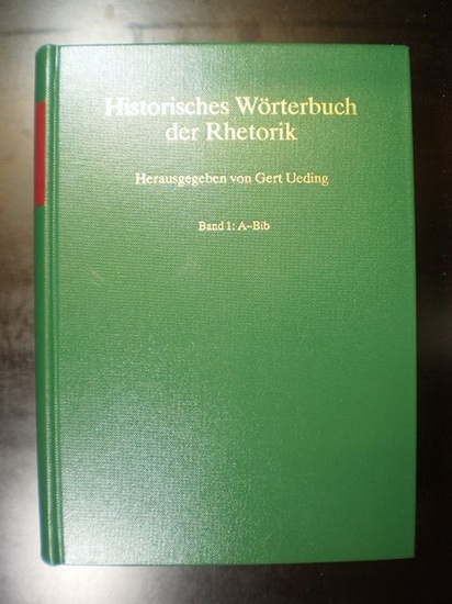 Historisches Wörterbuch der Rhetorik. Band 1: A-Bib Darmstadt, Wissenschaftliche Buchgesellschaft, 1992. Leinen, gebunden; grüner, goldgeprägter Einband, Zweispaltendruck / Anz. Seiten: 1592 / 20,5 x 28,5 cm / Zustand: sehr gut, geringe Gebrauchsspuren; Einband etwas berieben.