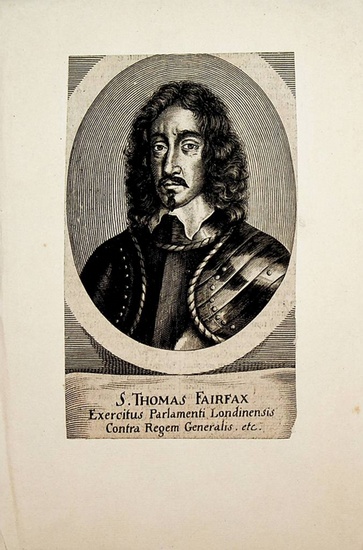 FAIRFAX of Cameron, Thomas Fairfax, 3rd Lord Fairfax of Cameron (1612-1671) Frankfurt Matth?us d. ?., Merian Erben Verlag, 1652. Kupferstich, Ausschnitt auf Tr?gerpapier kaschiert, Tr?ger 22 x 15 cm, mounted on carrier sheet, auf Tr?gerblatt kaschiert. antique print / antike Druckgrafik.