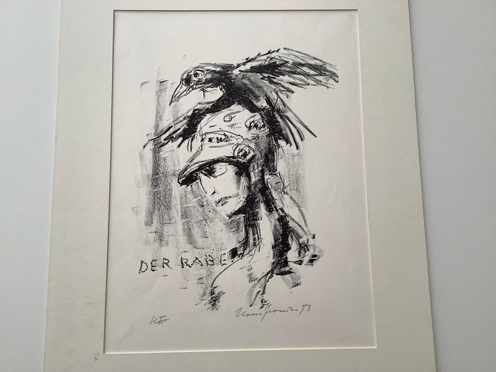 Der Rabe. (19)73. 41 : 34 cm. Original-Lithographie. Signiert und datiert. Künstlerexemplar außerhalb der Auflage. Von Fronius in Bleistift KEX bezeichnet.