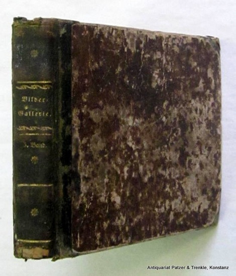 Bd 5. Gotha, Hellfarth, (1832). Mit lith. Titel und 96 (statt 108) lith. Tafeln. 96 S., 1 Bl. Hldr. d. Zt.; stark bestoßen und beschabt, Kapitale defekt. Wegehaupt I, 1525; vgl. Slg. Hobrecker 5441 (Teilstücke). - Jahrgang 5 der Monatszeitschrift, die jeweils aus 4 Blatt erklärendem Text und 9 Lithografien bestand. Enthält Pläne von Bonn, Breslau, Darmstadt, Dresden, Göttingen, Leipzig, Lissabon, Mainz und Stockholm und 30 Ansichten, darunter Bonn, Braubach, Dresden, Erfurt, Göttingen, Hannover, Herrnhut, Köln, Landshut, Leipzig, Lüneburg, New York, Salzburg, Stockholm, Straubing, Stralsund, Wiesbaden und Worms. Weitere 30 Tafeln zeigen Tiere, darunter 17 mit Vögeln und 11 mit Säugetieren, 9 Tafeln mit Darstellungen von Pflanzen, die restlichen mit historischen Szenen und einer Karte von Portugal. - Es fehlen die Ansichten von Biebrich, Darmstadt, Eppstein, Havanna und Sydney, der Grundriss von Wiesbaden, die Vulkane von Hawaii, die Karte von Nordamerika und 3 Tierdarstellungen (Affen und Fledermaus). Durchgehend etwas gebräunt, mit Gebrauchsspuren und. fingerfleckig. Zwei Tafeln ankoloriert, zahlreiche Tafeln mit Bleistiftkritzeleien, meist verso.