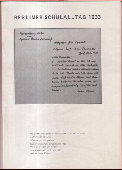 Berliner Schulalltag 1933. Informationsheft für Lehrer und Schüler zur Ausstellung 'Das war ein Vorspiel nur?' Bücherverbrennung Deutschland 1933, Voraussetzungen und Folgen.